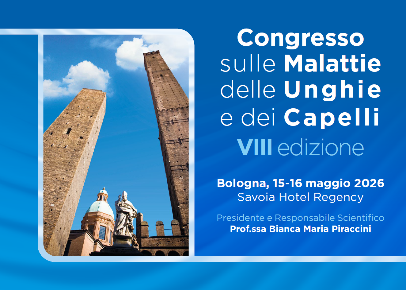 Siamo lieti di annunciare che dal 15 al 16 maggio 2026 si svolgerà a Bologna l’ottava edizione del “Congresso sulle Malattie delle Unghie e dei Capelli”.