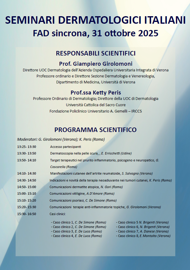 Sono aperte le iscrizioni al corso FAD sincrona/webinar ECM “Seminari Dermatologici Italiani”.